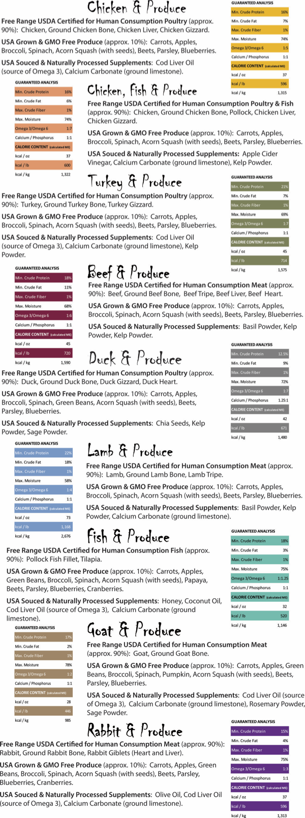 All of our meat is sourced from USDA certified and inspected plants. We never use 4-d meat, denatured, rendered, or any meals of any kind. We use premium muscle cuts to increase the protein content.