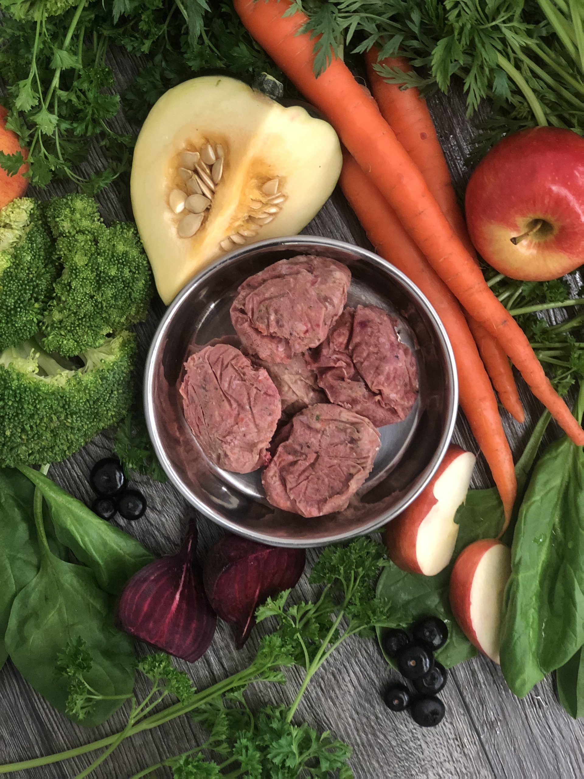 - 90% Meat, Bone, and Organ 10% Fruits, Vegetables and Supplements