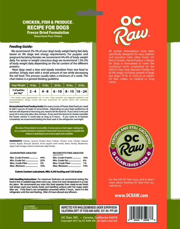 CHICKEN, FISH & PRODUCE ~ 14 oz Freeze Dried Sliders
