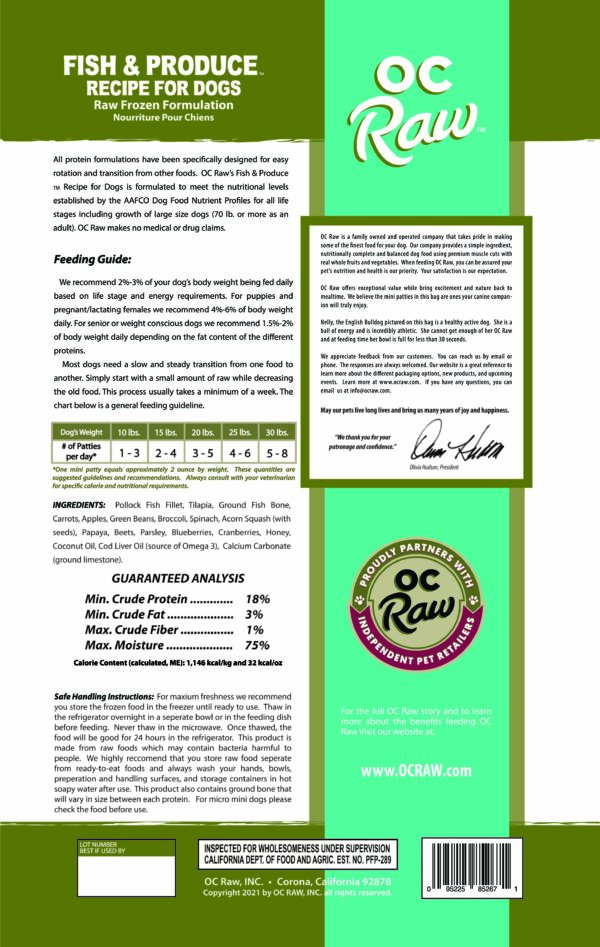 Transitioning to a new food varies from pet to pet. What works for one may not work for another. Those with hearty digestive systems can transition quicker, even cold turkey without any significant side effects. While other dogs benefit and may require a slow, steady transition ranging from a few days to several weeks. Simply start with a small amount of OC Raw to your current food and every day or every few days increase the amount of OC Raw while decreasing the old food.