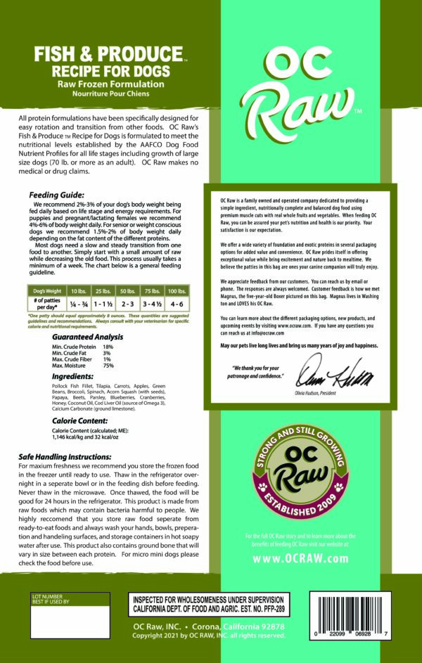 Transitioning to a new food varies from pet to pet. What works for one may not work for another. Those with hearty digestive systems can transition quicker, even cold turkey without any significant side effects. While other dogs benefit and may require a slow, steady transition ranging from a few days to several weeks. Simply start with a small amount of OC Raw to your current food and every day or every few days increase the amount of OC Raw while decreasing the old food.