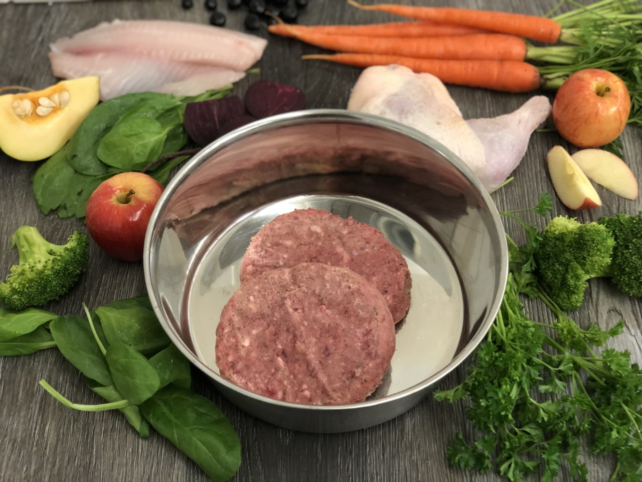 - 90% Meat, Bone, and Organ 10% Fruits, Vegetables and Supplements