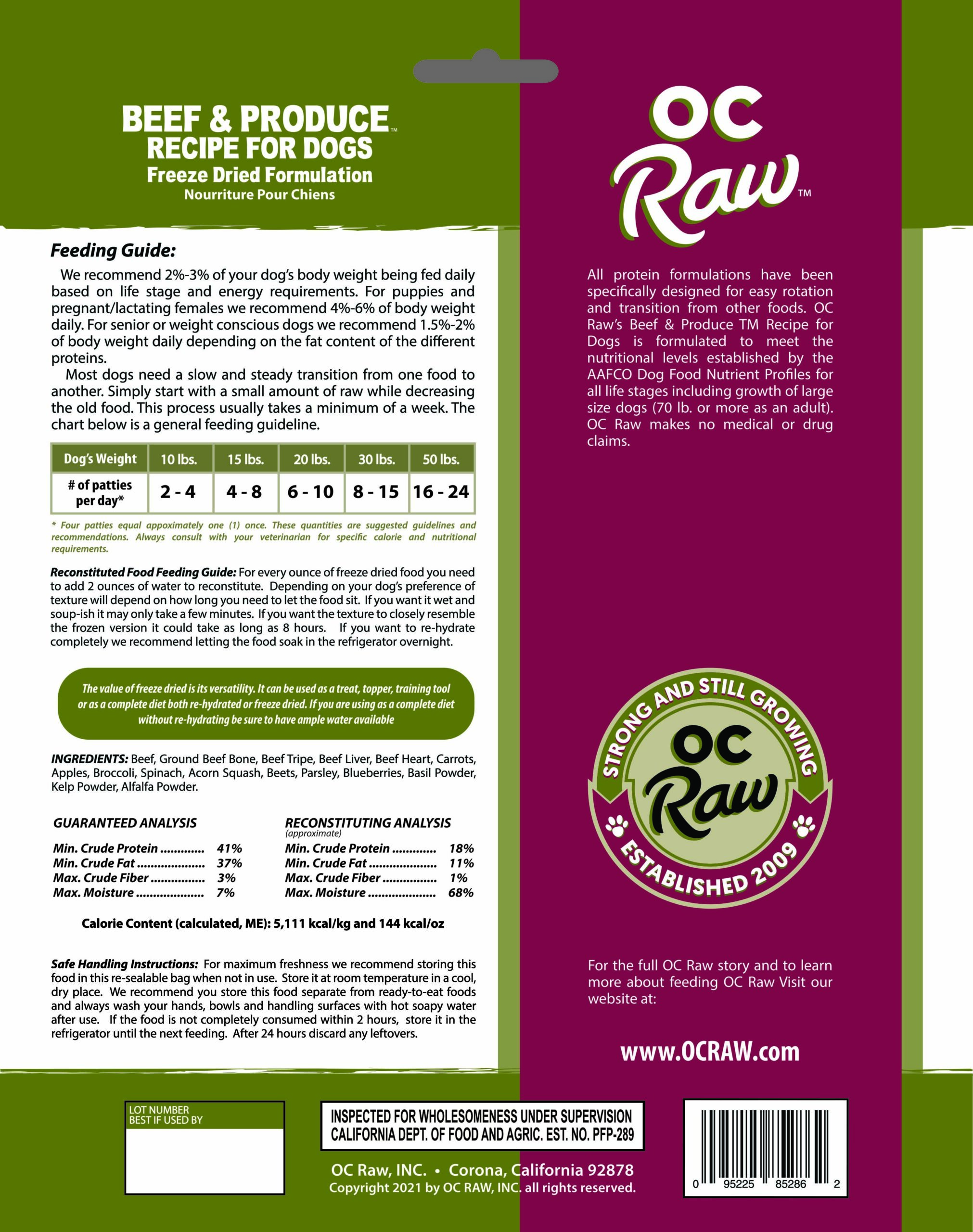 BEEF & PRODUCE ~ 14 oz Freeze Dried Sliders